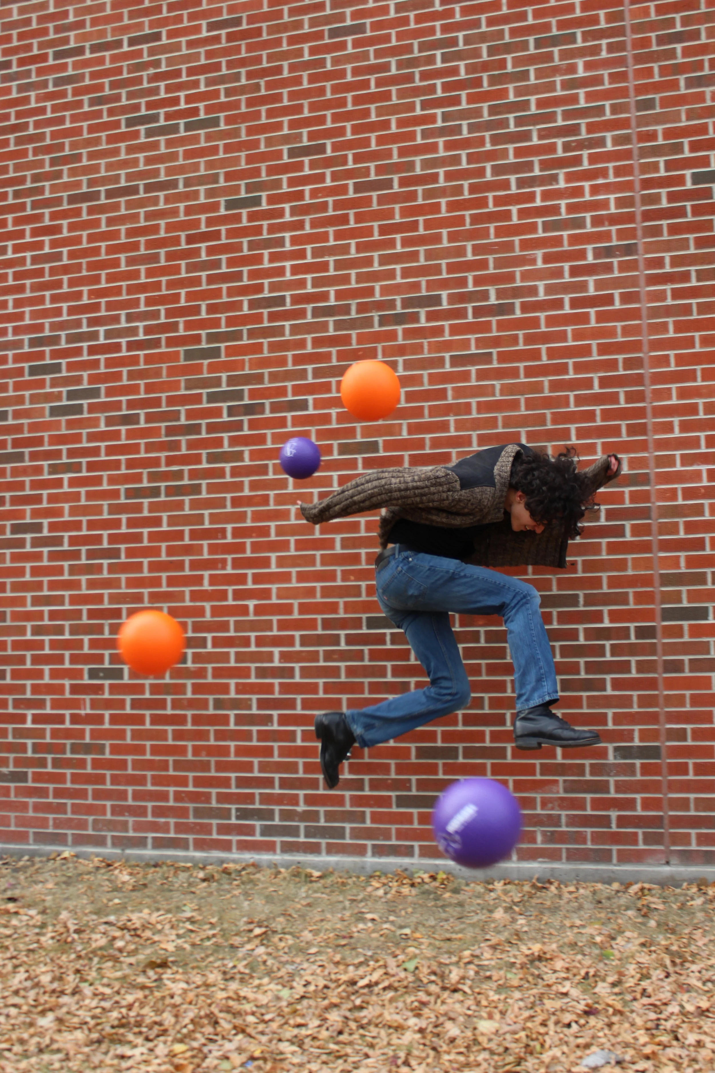 If your not familiar with Robert Longo, he's an American Artist who first gained widespread fame with his "Men in the Cities Series". He's gone on to do an incredible amount of impressive work, generally large-scale and done in graphite or charcoal. The story is told that Longo would hire models, ask them to dress in informal wear and throw objects at them as hard as he could. If your look at his drawings, it makes sense, right???? So, the Art Club decided to try some Longo inspired photography. We used nerf balls to throw and each student they got the chance to "dodge the ball". The results we spectacular and I could not stop laughing!